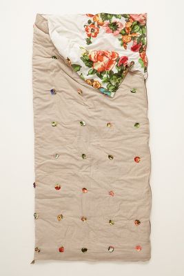 I have never gone camping ( huge gasp of surprise here I know) but maybe that is because I never saw a cute sleeping bag, leave it to Anthropologie to tempt me (to buy this, not go camping...come on..its me):